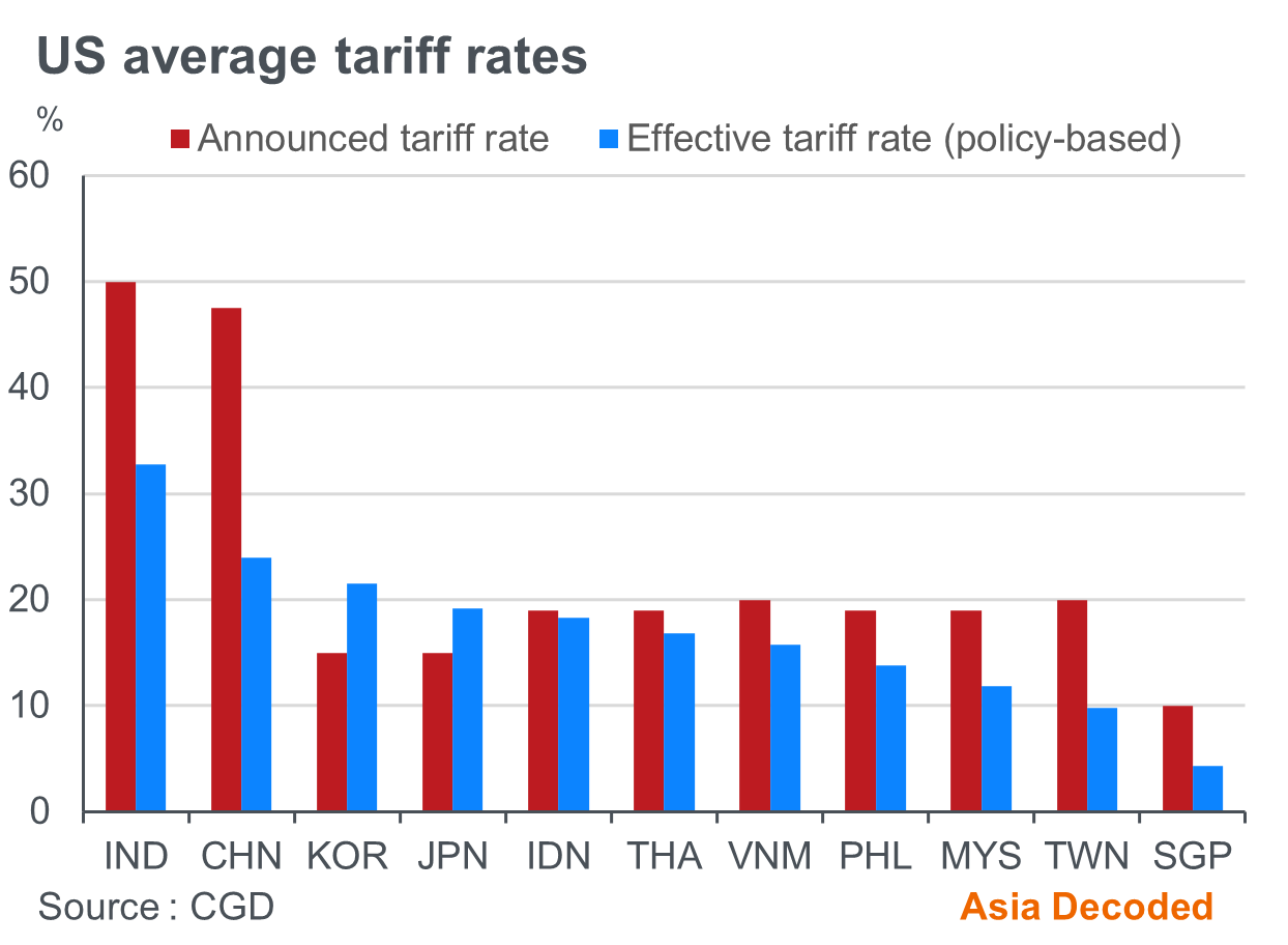 This was partly due to tariff front-running by US firms at the start of the year and smaller drag from tariffs than initially expected. Not only did the majority of US tariff hikes did not take effect until the second half of the year, but also exemptions on key commodities like electronics and pharmaceuticals kept the effective tariff rates well below the announced ones for many Asian economies.