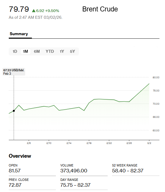 Energy prices had been trending up in the run up to the US-Israel strikes on Iran. With active hostilities now underway, the geopolitical premium has spiked. This is partly because the lack of clarity on the “very strong objectives” that the US has for invading Iran, and the speed with which the conflict is spreading across the Middle East, has made the endgame hard to ascertain.