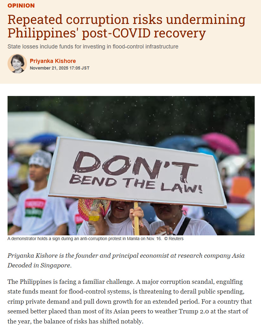 Repeated corruption risks undermining Philippines' post-COVID recovery